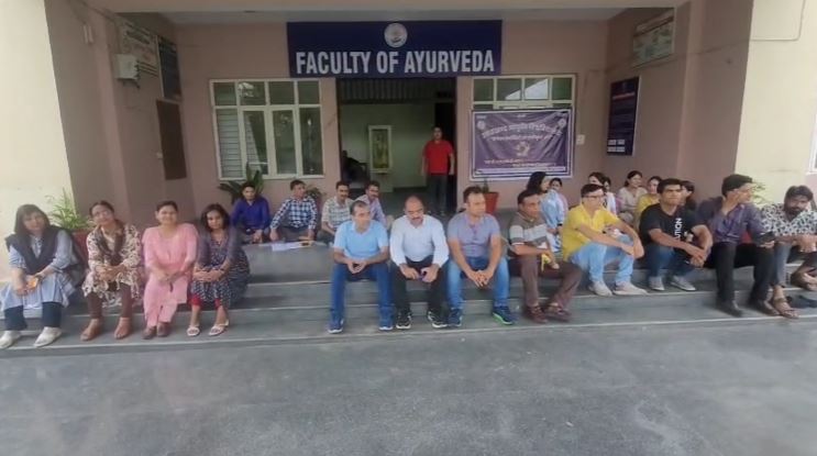 आयुर्वेद विवि में वेतन का संकट, OPD बंद कर धरने पर बैठे कर्मचारी, मरीज परेशान