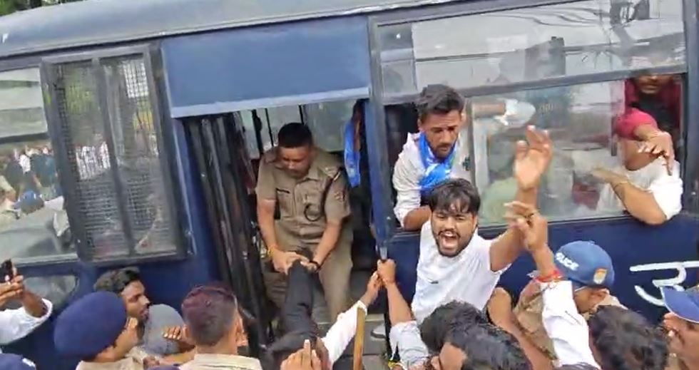 कॉलेजों के चुनाव न होने पर NSUI का सचिवालय घेराव, पुलिस के साथ हुई नोंक झोंक